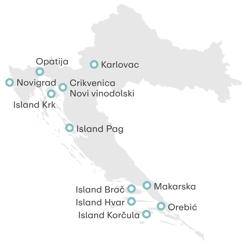 From the idyllic Istrian coast and all of the beauty of Kvarner, to the hidden Dalmatian gems – every destination has its own story to tell. Whether you’re looking to relax on the sun-soaked beaches, take a stroll through the old town centres, or explore the beautiful nature, Aminess destinations guarantee the perfect blend of relaxation and authentic experiences.