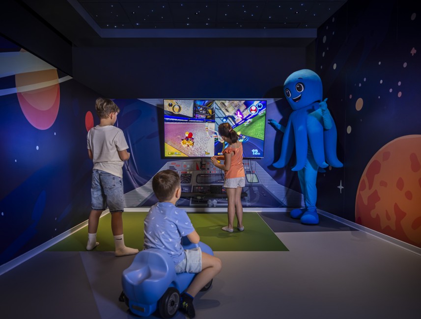 Für Kinder zwischen 4 und 10 Jahren bietet das moderne Miramì Fun Park-Spielzimmer zahlreiche Abenteuer: einen Hindernisparcours, einen Jungle Gym, Spielplätze und einen Pool mit Attraktionen.