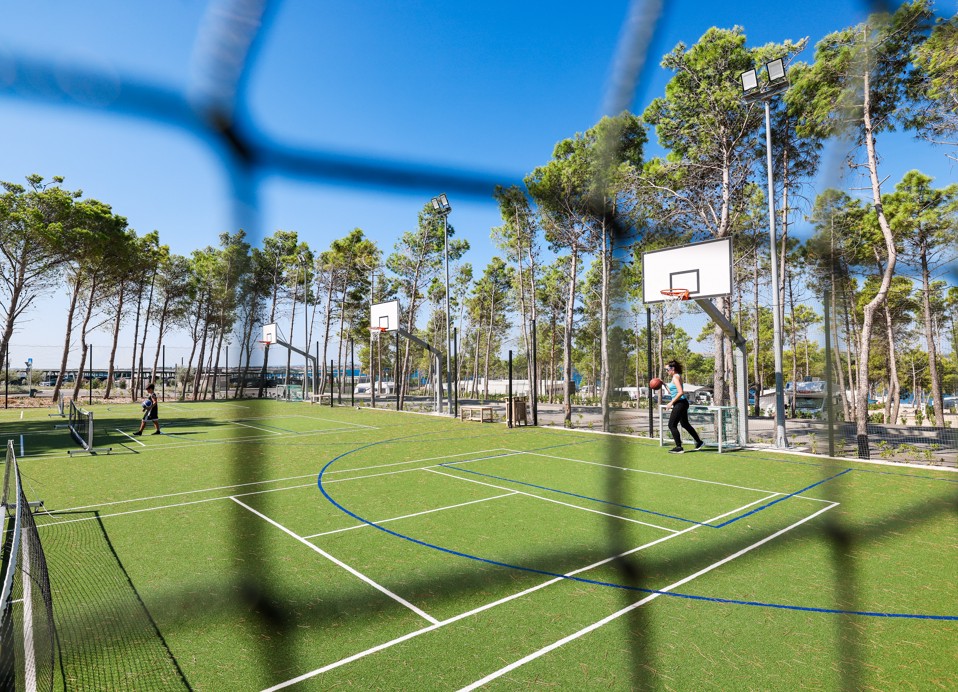 Polivalentno igralište prilagođeno je za različite vrste sportova, uključujući nogomet, košarku te brojne druge aktivnosti koje potiču druženje i timski rad. Provedite dan u pokretu i zabavi.