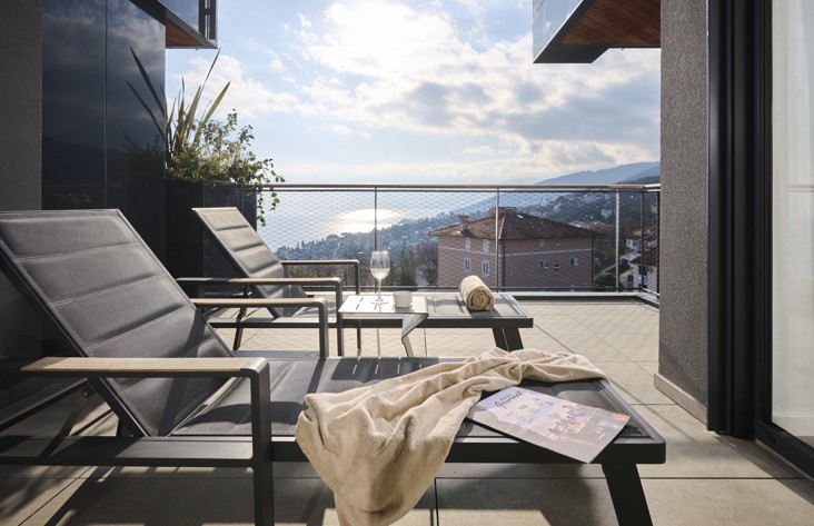 Dan začnite z zajtrkom na strehi s pogledom na morje, nadaljujte z uro pilatesa, zaključite pa ga s sproščanjem v savni ali sprehodom po opatijskem sprehajališču Lungomare. Apartmaji z eno, dvema ali tremi spalnicami zagotavljajo dovolj prostora za vso družino. Če želite še več, izberite redek biser naše ponudbe – penthouse, v katerega vstopite naravnost iz dvigala!
